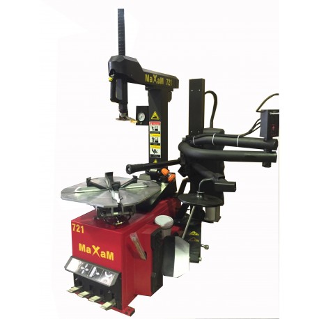 • MAXAM 721RH $4,300.00Maxam 721 Automatic car tyre changer 11”-22” outside clamping Automatic tyre changer with pneumatic tilting back post Simultaneous pneumatic horizontal and vertical arm locking Clockwise and anticlockwise rotation of the turntable through electric motor (1 Ph moto inverter) Double acting bead breaker cylinder Pressure regulator with water filter and lubricator Equipped with: Pressure readout unit with pressure release button Bead lifting/pressing device, to facilitate the operator’s job when working even on the most difficult sport wheels, low profile and Run Flat tyres.